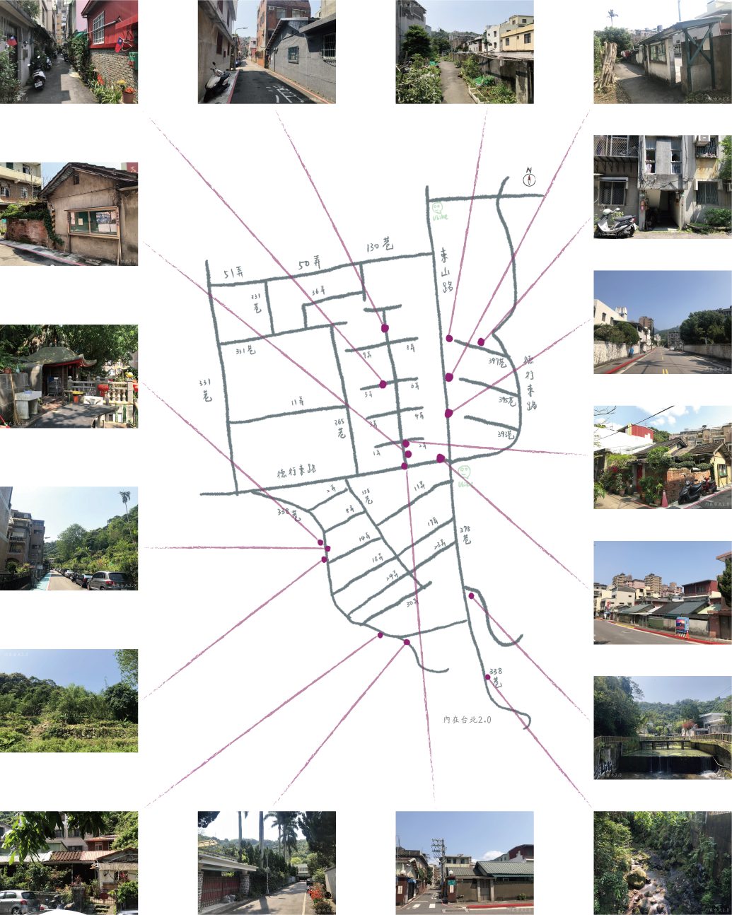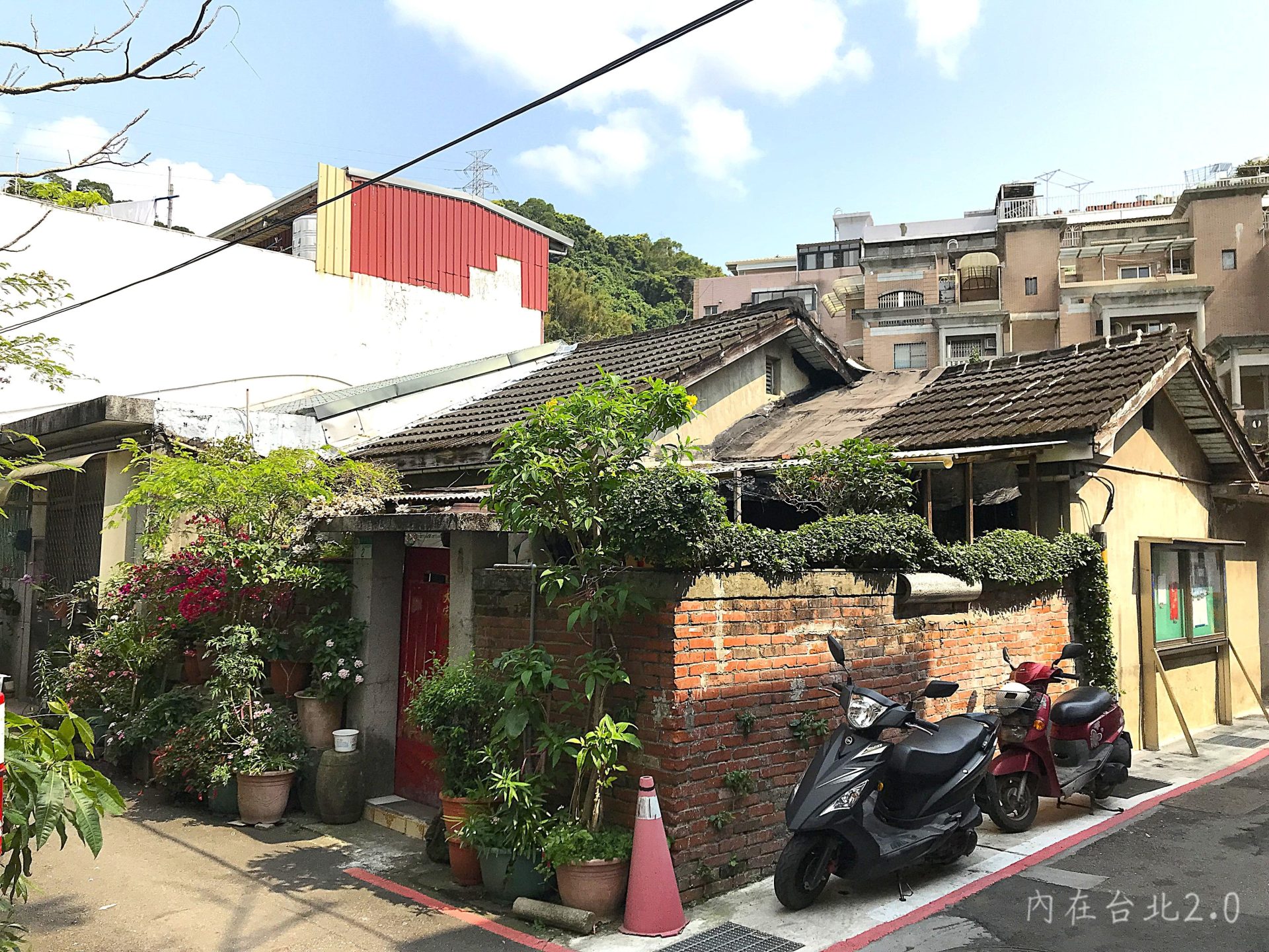 天母的邊陲眷村:忠孝新村 Post author:veins_of_taipei Post category:庶民生活 / 慢靜悠閒 / 時光 / 自然風 近山的天母,山下交界帶藏著一個如今已罕見的未改建眷村。其外圍為由長牆圈著,附近的幾個社區,也多有這樣的特質。 天母德行東路往東的尾端,人行道的圍牆後方,出現一列斜屋頂矮房。 那便是忠孝新村,它只有一個大門出入,進出很容易掌握。 近村門口的幾戶平房都有著早期眷村的模樣,紅磚矮牆,黑瓦,小院子。這戶山牆頂,且開著舊式氣窗,下方則立著村子的布告欄。 379巷是這個小村子的唯一主巷。忠孝新村早期供老蔣總統侍衛室幹部居住,屋舍為婦聯會所建,隨著屋舍老舊,後代居民尋求眷改,但國防部認定此處為官舍而未採納。這也意外留下了部分早期的眷村元素,非紀念館,是活的。 社區內更細的支巷。隨著後期房舍的增改建,忠孝新村早是矮房、樓房參差,現下已不易判斷出眷村,除了那幾面國旗。 從原出口離開村子,德行東路直角左轉至東山路,兩側都是綿長的白牆,是一條車流不大的街道。 白色長牆的公車亭旁,藏著另一個社區的出入口,背面是布告欄。 社區內的簡易菜圃,牆外是東山路,及其鄰居忠孝新村。 這處社區皆為同型式的步登公寓,樓梯間的出入口是通的,並無一般掛著信箱的共用大門。 轉進德行東路378巷,卻是進入了淺丘地帶,且有水域。下游類似水利設施,中間架橋,這樣的斷面在市區並不多見。 再往前是338巷,水道回復成溪流原始模樣,338巷則一路上坡往山裡延伸。 338巷有一段是囊底路,兩側皆是深院大戶人家,牆也似乎高些。 338巷另一段向北折回德行東路,其西側臨山坡。這處的住家組成形式較複雜,三合院、矮樓高樓相互緊臨。 附近民眾沿著坡地、藉著砌石整理出梯狀的簡易耕地。 貼著山壁的一間小廟,屋頂是少見的純水泥,清簡無任何裝飾。 和山坡對立的,是另一個大型社區,以連續的鐵欄杆圍牆為邊界。無論社區大小,牆高牆低,樓房或平宅,這一帶皆是淺丘的子民。 手感地圖 士13 Read more articles Previous Post建物的微風景:信箱 Next Post想家的時候:同鄉會 You Might Also Like 大安路上的彩屋與老派大樓 22 9 月, 2022 步行天堂:民生社區東段 27 9 月, 2023 舊日迷路:艋舺公園後面的世界 4 6 月, 2024