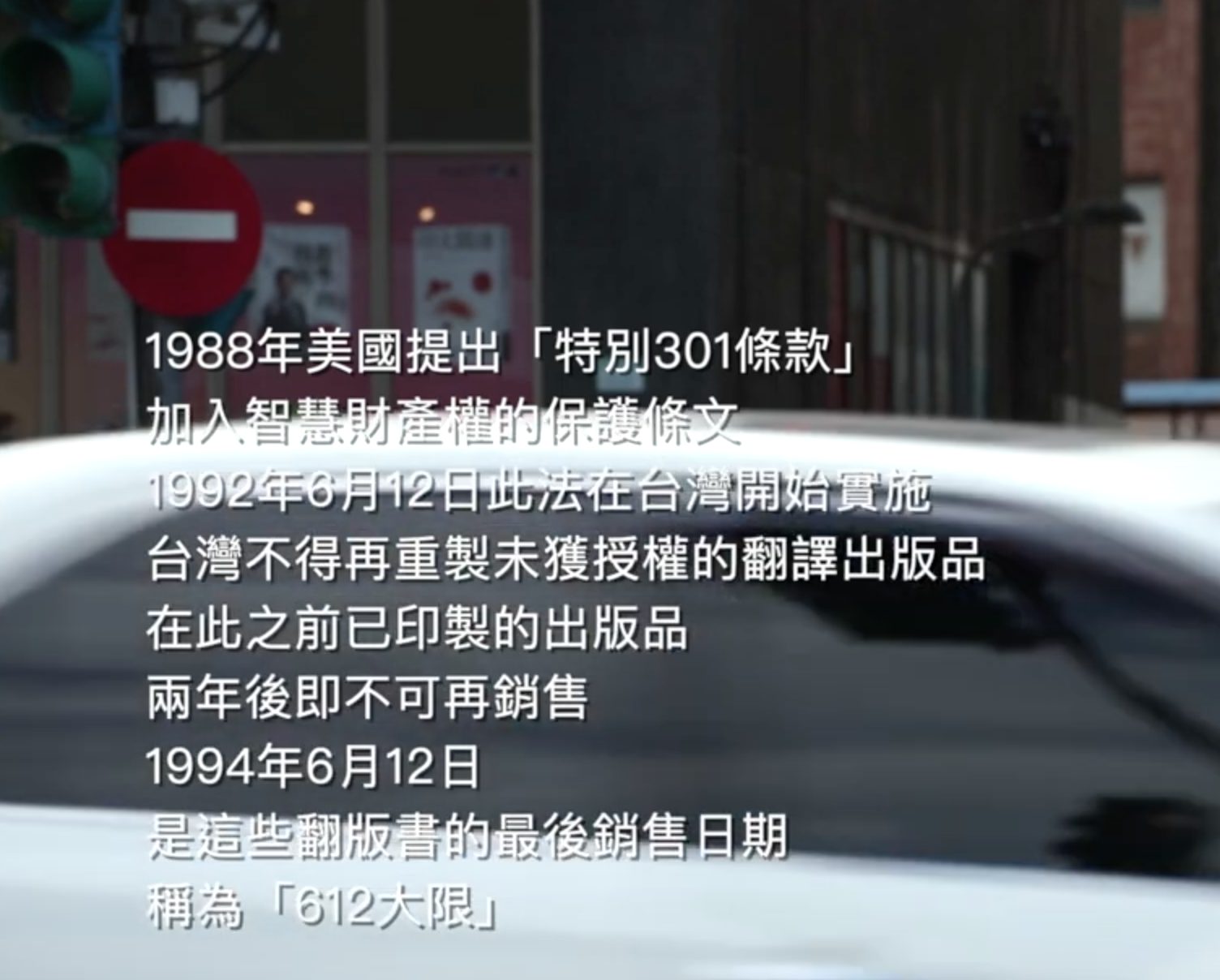 「特別301條款」資料引自影片《書店:學》地下啟蒙年代──唐山書店的地下紀事,特此致謝。