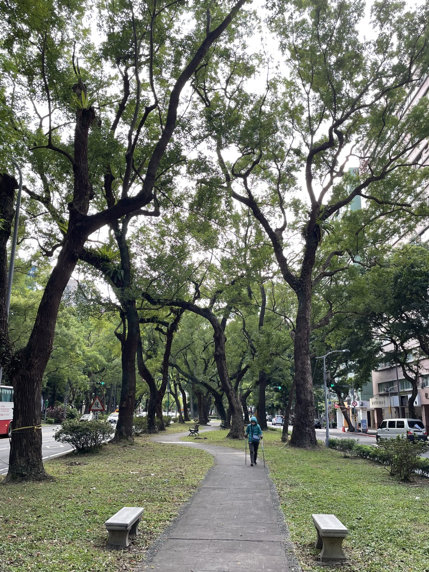 台北行道樹之四:規劃一棵樹,敦化北路的樟樹與敦化南路的台灣欒樹 Post author:veins_of_taipei Post category:街頭想想 圖/文:江晨 圖說文字 和人一樣,每一棵行道樹都有其歷史,它的遷徙背後也交織著許多人為因素。 按照樹木醫詹鳳春在《聽見樹木的聲音》一書中的梳理,台灣行道樹的發展演變深受日本與美國兩大體系的影響。如果上一篇文章提到的中山北路行道樹規劃受日本影響甚深,那敦化南北路的規劃,則不得不提到美國的影響。 行道樹規劃思想的不同 這種規劃思想的不同,體現在對道路空間定義的本質差異。日本式道路規劃取法自法國的香榭大道,雖有一整排樹木形成景觀,卻較缺乏與公園結合的廣大綠地,通常被稱為「林蔭大道」。而敦化南北路則屬於1950 年代美國盛行的「公園大道」(Parkway)概念,其核心在於將道路與綠地結合,讓人走在寬廣的綠帶中宛如置身公園,模糊了大馬路與綠地的邊界。 此外,敦化南路還有一個特殊的歷史背景:該路段曾被開發成飛機跑道,其寬度足以讓飛機升降,這也造就了今日格外寬宏的道路比例。 從松山機場進入台北市區,首先映入眼簾的是寬闊筆直的敦化北路。它是連接松山機場及台北市區的重要樞紐,道路兩旁高樓林立。在大型分隔島的綠帶上,種植著樟樹及台灣欒樹,樹下設置人行步道、休閒座椅,並配植多層次植栽,造就花木扶疏的休憩空間,也為城市帶來綠意。 萬年大樓地下室封存了青少年的聚餐記憶 回溯歷史,日據時代的敦化南北路所在地原是一片廣大的農地與零星農舍。隨著 1936 年松山機場落成,光復後機場地位日益重要,於是政府在 1950 年開始開闢敦化北路。到了 1956 年,為迎接國外賓客並兼顧國門觀瞻與便捷交通,政府運用美援基金將道路自原有的 10 公尺寬拓寬為 30 公尺,並於 1968 年再次拓寬至 70 公尺寬的大道。 同樣由美援挹注興建的敦化南路,開闢過程則頗有一番曲折。雖然八德路至仁愛路段在 1957 年已初闢完成,但因位於現今四維路 141 號位置的「林安泰古厝」拆遷引發爭議,工程進度一直拖到了 1978 年。直到台北市政府決定將林安泰古厝遷建於濱江公園(新生公園後方),敦化南路才能順利續建到和平東路段;最終於 1988 年全線打通至基隆路段。 至於為何選擇樟樹作為主角?詹鳳春介紹,戰時台灣許多樟樹被砍伐,在當時是極其珍貴的樹種,因此在規劃這條重要的「公園大道」時,特意大量栽植了樟樹。 此外,樟樹樹冠寬大、枝葉全年濃密,遮蔭效果極佳,且具備萌芽力強、吸收噪音、抗有害氣體力強等特性,適合都市環境且壽命極長。目前這條路由寬廣中央安全島與雙排綠帶構成,在北路段可見成排的高大樟樹形成濃密綠廊;在南路段更有台灣欒樹隨季節更換色彩(金黃花朵、紅色蒴果),賦予豐富的景觀變化。此外,還結合了茄苳、白千層等配角與底層灌木,形成複層植栽並創造出「藝術通廊」的氣息。 誰來關注行道樹的健康 和人一樣,行道樹也面臨著健康問題。 詹鳳春在《聆聽樹木的聲音》一書中寫道:「道路對樹木而言,可以說是最不友善的生長環境。因根系無法在有限的植載穴內自由伸展,同時又受到汽車排放的廢氣,步行者的踩踏等種種要素。還處於病原菌或害蟲侵襲壓力。行道樹為生物,其命運自然的也就避免不了衰弱、枯死等宿命。因其腐朽傾倒,進而衍生環境危機。」 這個意義上,關注行道樹的健康,也是關注行人的安全與健康。 詹鳳春強調,行道樹應視為都市的「血管」,連結各個公園形成完整的綠色循環,而不只是路邊的裝飾品。她常形容台北許多行道樹就像「穿著小腳鞋跳芭蕾的舞者」,因往往只給予微小的水泥植穴,導致根系無法伸展,只能向上竄根破壞路面。 針對這類問題,她主張應將孤立的植穴連結成「連續綠帶」,這正是敦化南北路中央綠帶較能維持樹木健康的關鍵。此外,她也指出「台灣的樹會生病,90% 都是土壤問題」,批評都市開發時常填入建築廢棄土,並主張應透過「植栽基盤改良」與科學修剪來尊重樹木的生命力。在詹老師眼中,這些樹是歷史脈絡的隨行者,關注行道樹的健康,本質上也是在關注行人的安全與城市生命的品質。 針對台北市每年颱風季前的預防性修剪,詹鳳春有相當嚴厲的評論,她認為應該尊重樹型,科學修剪。隨意強剪(俗稱「剃頭」)會破壞樹木的生理平衡,導致樹木傷口感染甚至腐朽。她主張修剪應配合樹木生長季節,且要保留樹木的「結構枝」,讓樹木在防風的同時仍能維持光合作用與生命力。 詹鳳春爬梳古籍,到美國研究,法國考察,花費很大力氣,研究行道樹,寫行道樹的歷史,「就是想讓大家瞭解,行道樹不僅僅是我們眼前看到的那一棵棵樹而已,這些樹是有歷史脈絡的,隨著世界的現代化,它的機能對我們的環境、對人的影響越來越重要,但它們的生存環境卻是所有樹木裡面最最悲哀的。」她說,「做這樣的研究是出於對行道樹的憐憫」。 文章部分內容參考以下內容,謹致謝忱: 詹鳳春:《聆聽樹木的聲音》,麥田出版 台北市政府網站資訊 點擊這裡 Tags: 台北行道樹, 走路 Read more articles Previous Post台北行道樹之三:保護一棵樹,和平東路的烏桕 You Might Also Like 異世界的街頭快閃週年慶:中元普渡 30 8 月, 2022 城市中最有「植感」的電氣時代產物 30 9 月, 2022 海市蜃樓的同行者 6 8 月, 2025