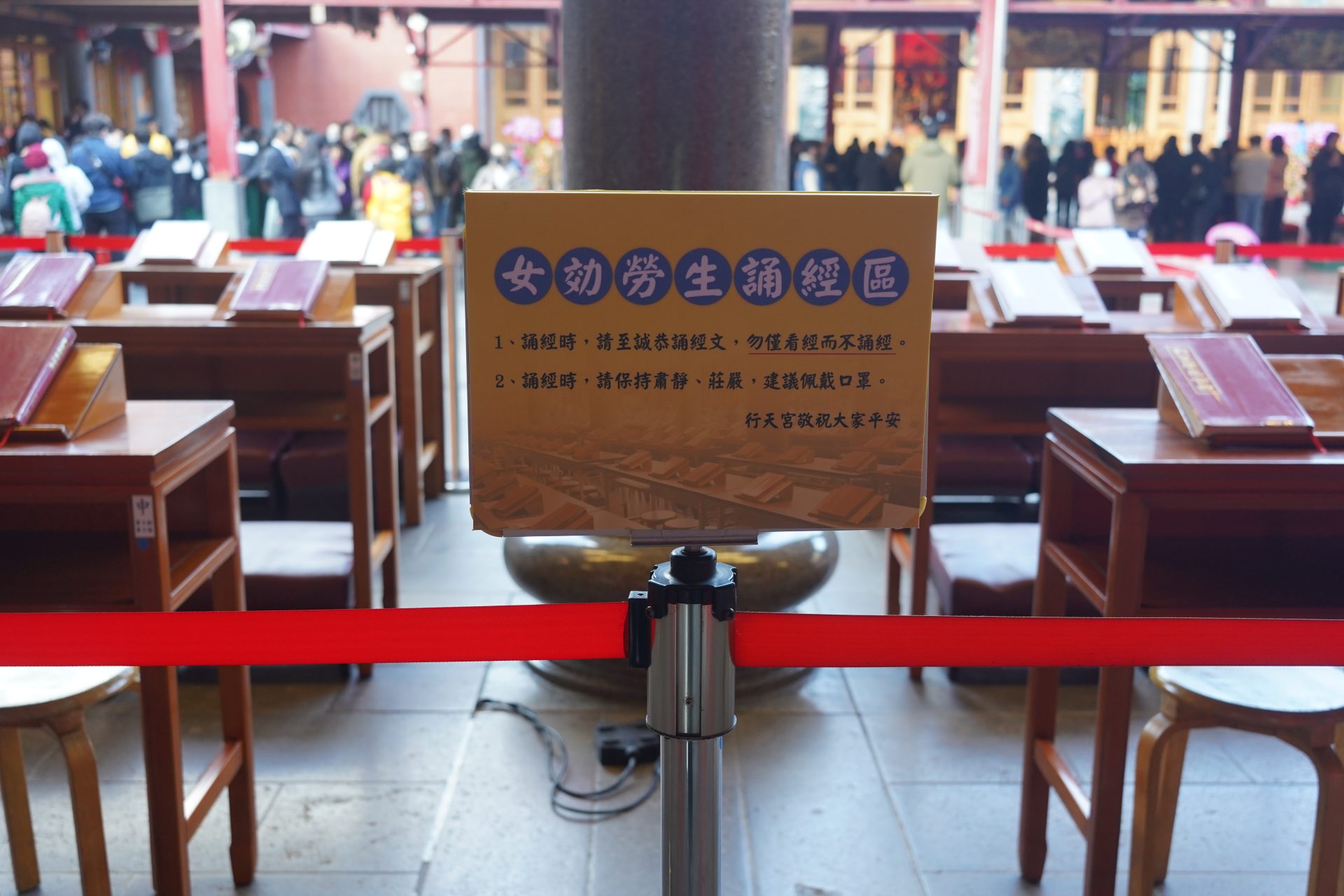 漫長的排隊過程中,眾人皆靜默無言。這時,隊伍中響起了孩童的哭聲。收驚的師兄請維持隊伍秩序的公益志工大姐,讓孩童的母親帶著他先來處理。後面排隊的大人們也默默目送這位插隊者,毫無怨言,並送上祝福的眼神。