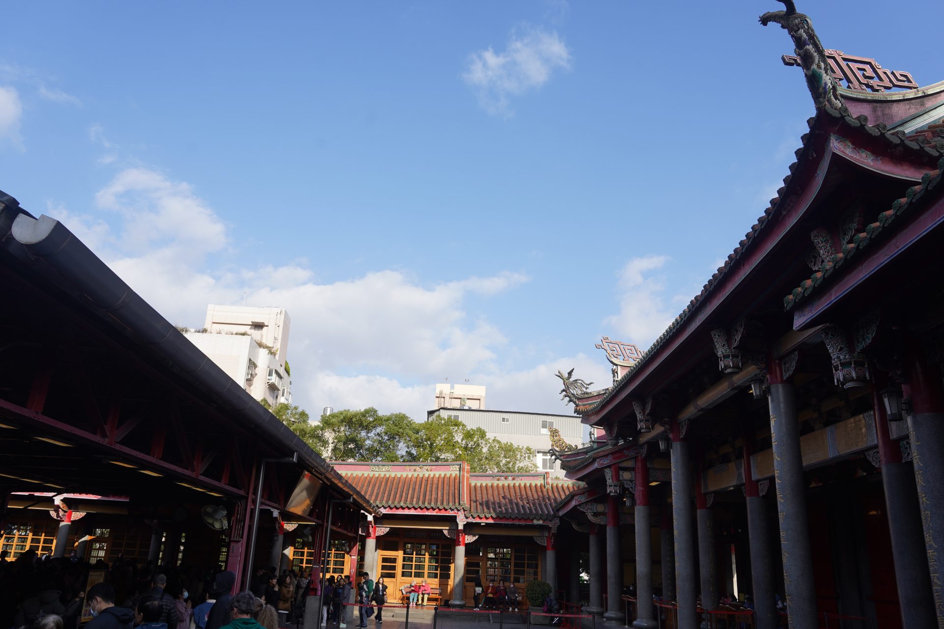整個過程也是一種儀式的律動。從擲筊、取籤到排隊解籤,這套「新與舊」交織的流程,本身就是一種強制的心理沈澱過程。求籤者拿到籤詩後,一般不急著尋求標準解答。會在大殿前的空靈丹墀(大殿前方凸出的露天平臺稱為「丹墀)稍作停留,對照籤意與自己的現狀,經過這樣的思考,再去解籤,作為意見的參考,整個過程,是一場沈浸式的緩慢行程,也在一定程度上體現了「走得緩慢,想得深刻」。